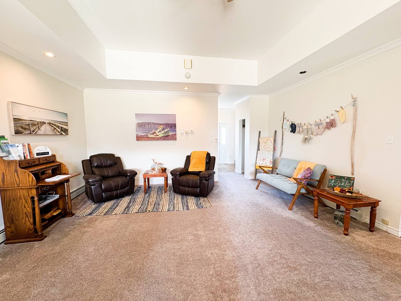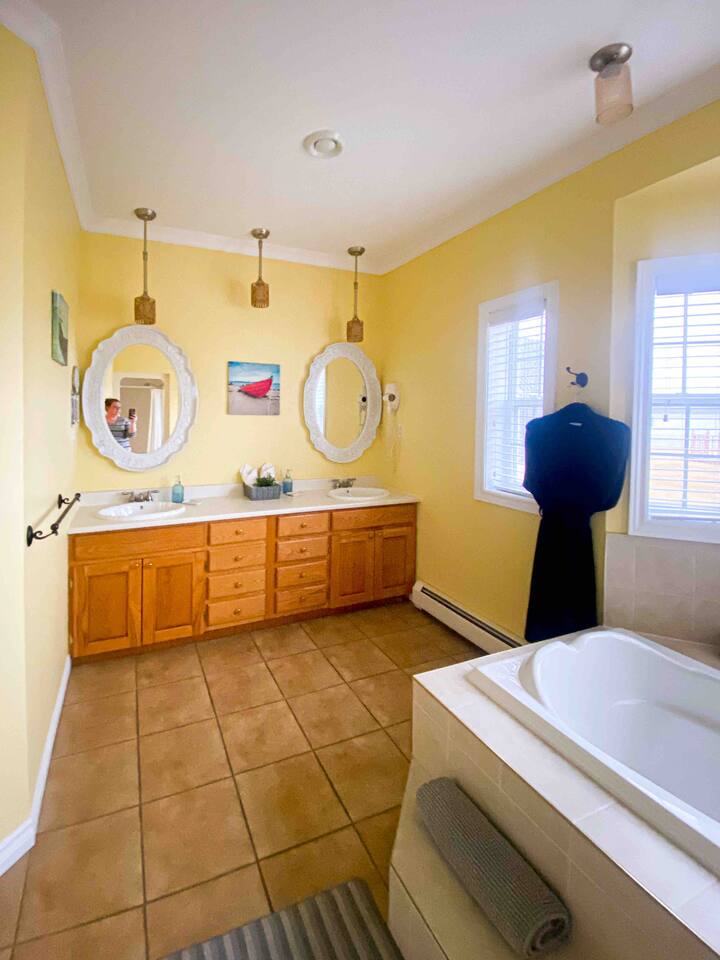Experience the charm of Seabreeze Suite, your cozy retreat in Gros Morne National Park. Enjoy traditional coastal decor, unwind in the spacious suite featuring a jacuzzi tub, double vanity, and comfortable sitting area. Explore the wonders of Gros Morne, all within a stone’s throw away. Book your stay for a blend of relaxation and adventure in Newfoundland’s stunning landscape.
