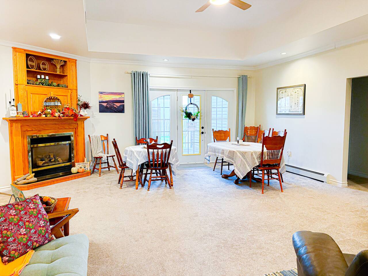 Covered patio, backyard, front yard, common area, and dining room for breakfast